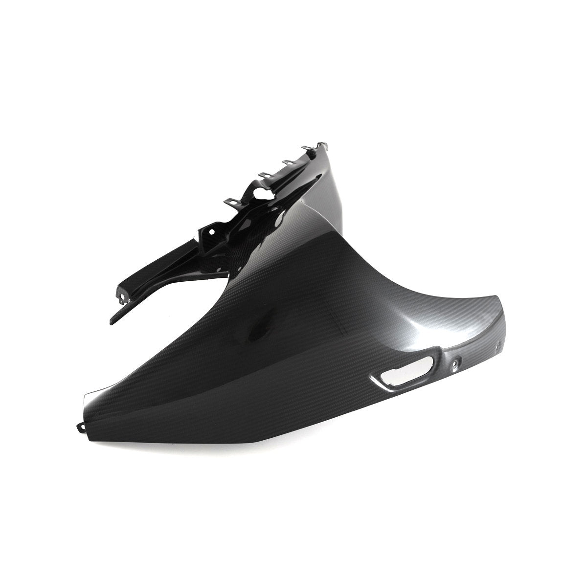 This carbon fiber right side headlight fairing is an OEM replica of the newly redesigned 2023-2024 M1000RR headlight fairing.