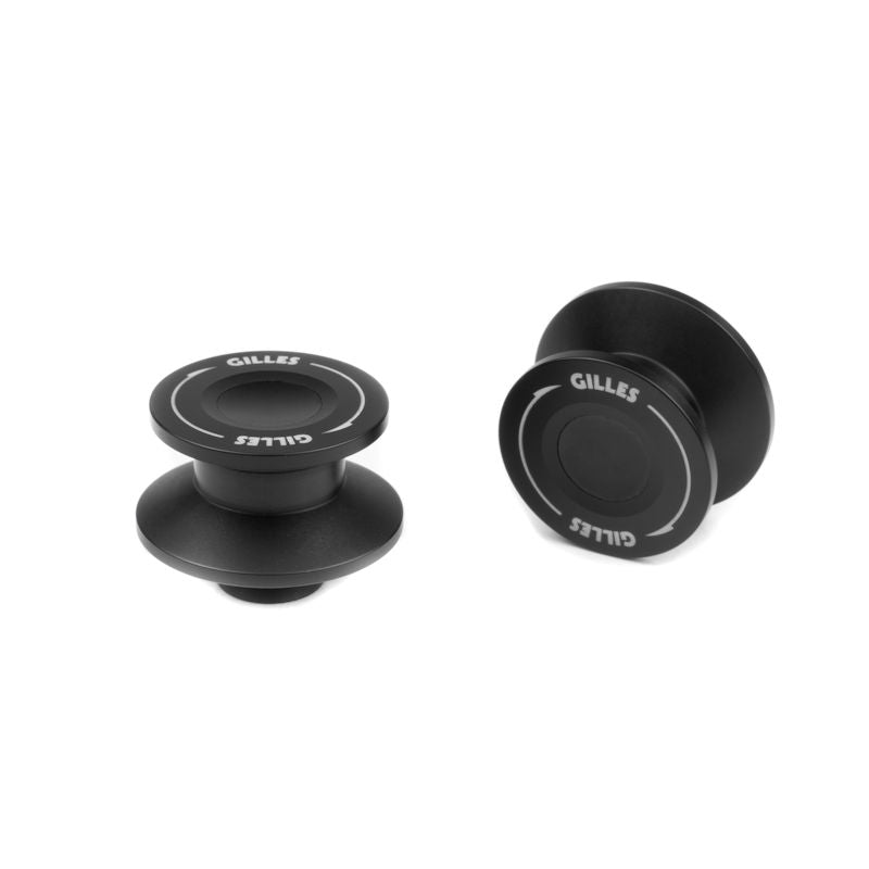 The Gilles Tooling rear stand swing arm spools bolt into the designated area of your swingarm so that you can use a rear stand to lift the bike. It also adds an layer of safety in the even of a tip over or a crash, protecting the swginarm and the axle nut.