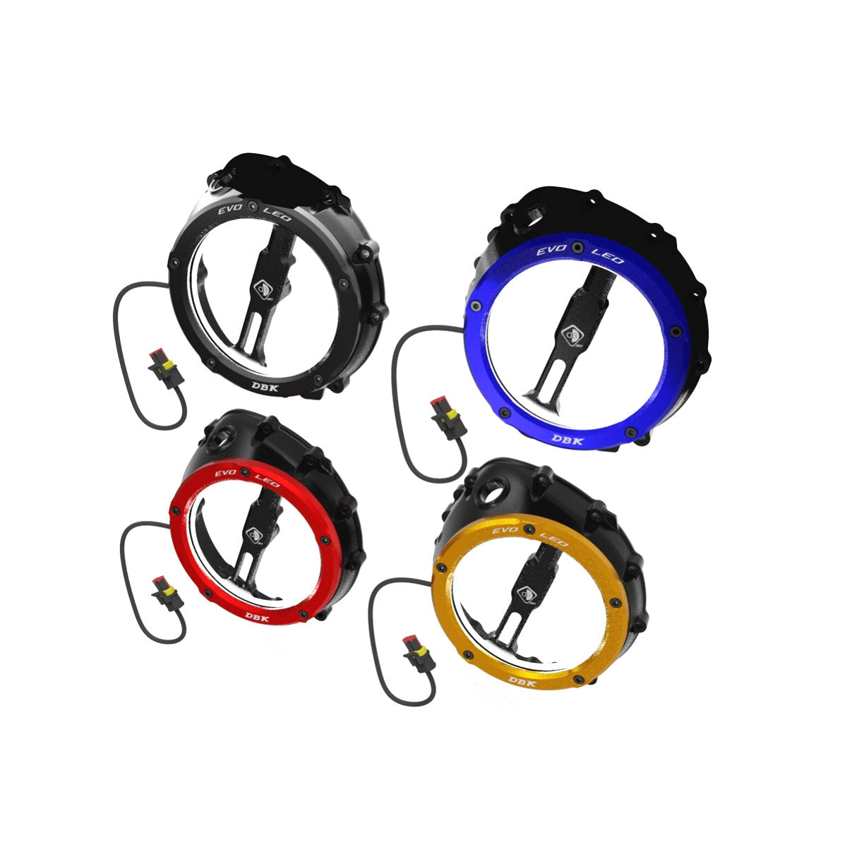 • Manufactured by DBK Special Parts, often referred to as the oil bath, this is a wet clutch case cover with clear clutch cover that features an LED light up ring.