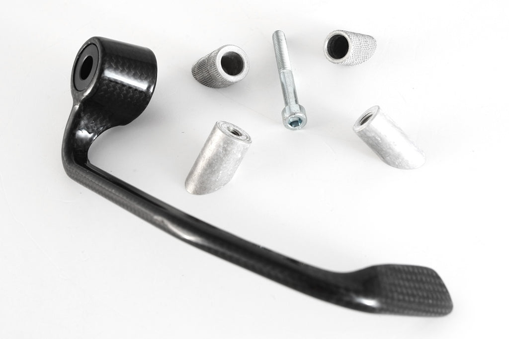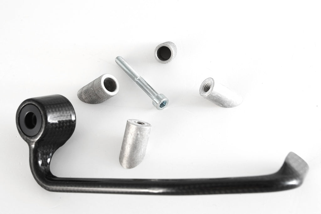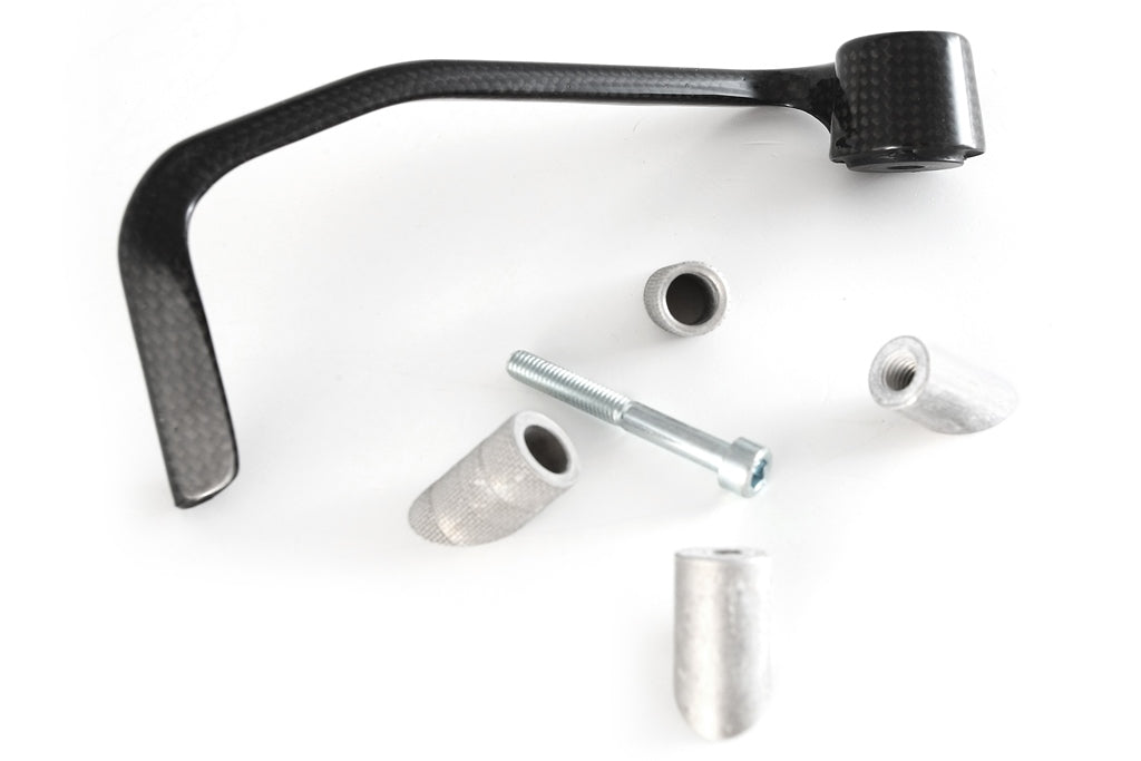 The LEVER GUARD - SKY is a carbon fiber component created and designed by FULLSIX CARBON. Its a racing component that is fully race compliant and incorporate features from World Superbike and British Superbike to give you a competitive advantage such as maximum weight savings and improved aerodynamics. See below for which materials and surface treatments are available. Please order the correct adapter for your motorcycle brand under the ACCESSORIES section.