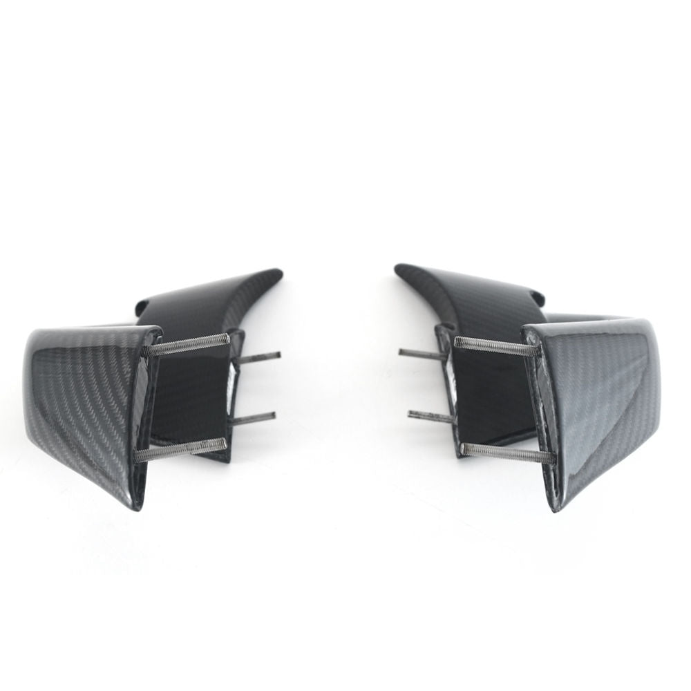 Exact reproduction of the BMW S1000RR (2023-2024) carbon fiber winglets. Produced in an autoclave using pre-preg carbon fiber to ensure lightweight and also extremely strong structural characteristics.