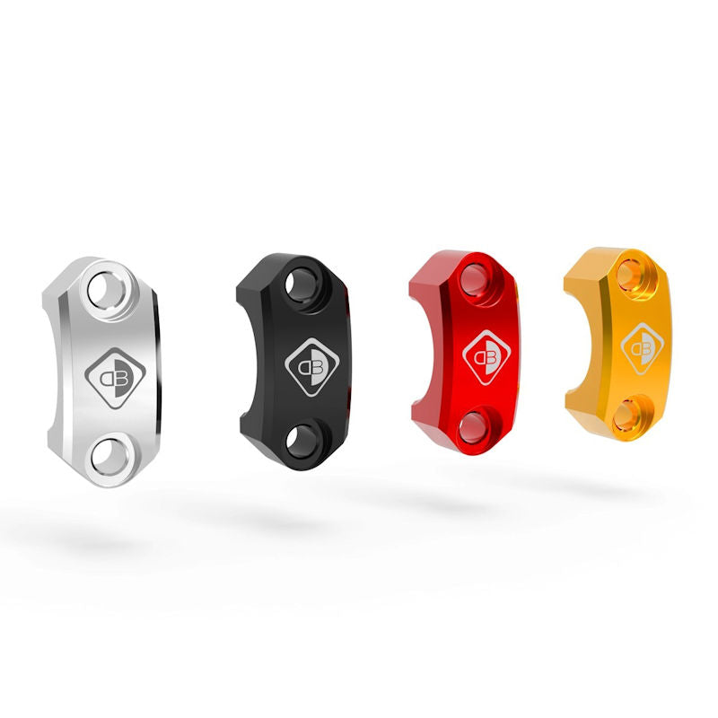 The Ducabike master cylinder clamp cover is machined from 7075 billet aluminum, and finished off with beautiful anodized colors.