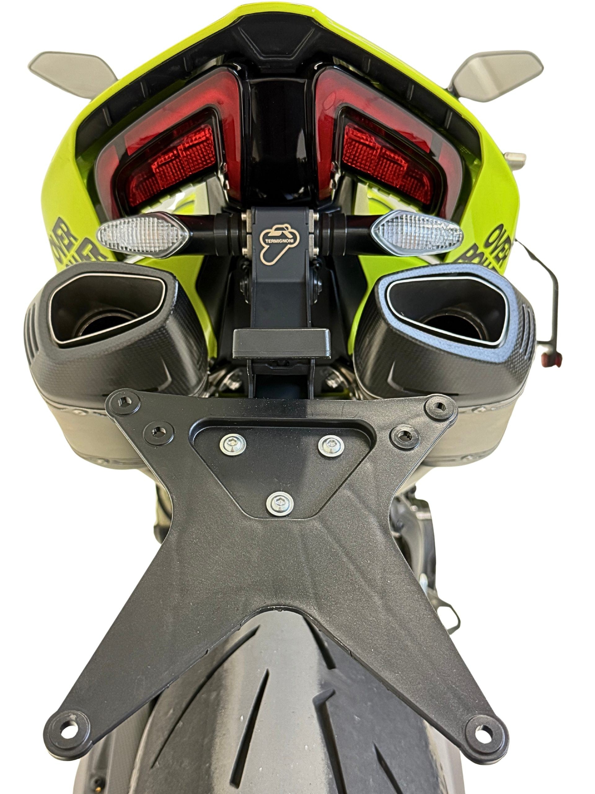 Termignoni presents the full titanium, black-coated licence plate holder for the Panigale V4 my25 and Streetfighter V4 my25.