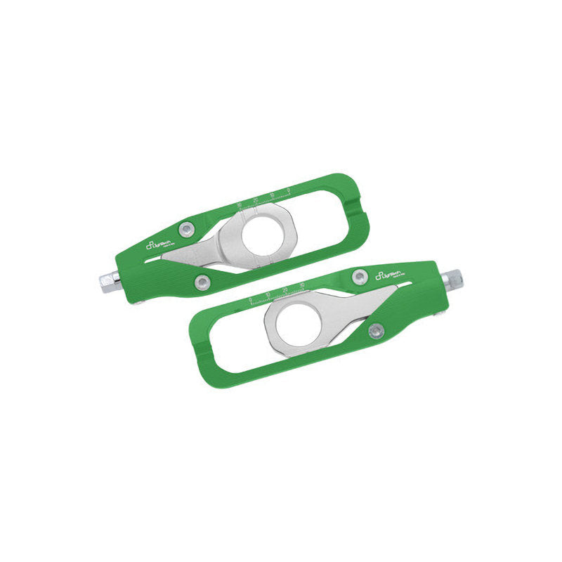 Made from 7075-T6 and 6082 billet aluminum and precisely machined for the perfect fit, these chain adjusters allow you to easily set your chain tension, and also it allows the wheel to be accurately lined up from left to right side.