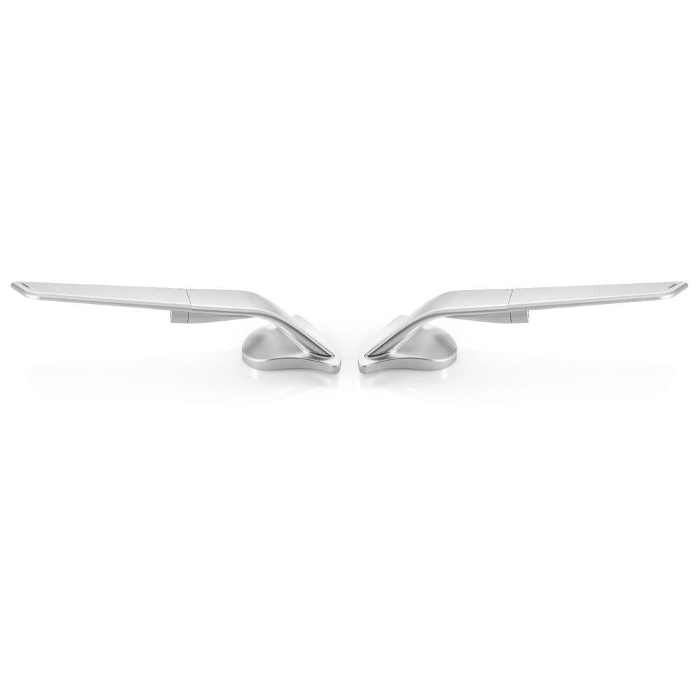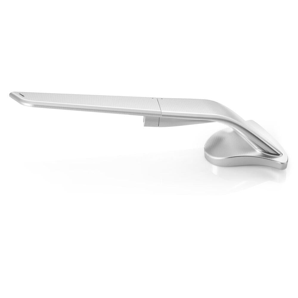 Designed to disappear. Born to go beyond. Engineered for supersport motorcycles, Stealth Sport is created to minimize visual impact and dominate the air. Two elements: a fixed base integrated into the fairing and a movable body that houses the glass. With a single motion, the structure compacts, transforming the mirror into an aerodynamic wing. The result: tangible downforce, up to 4 kg at 300 km/h. Milled from a single block of aluminum and finished with deep anodization, it features a convex HD blue-tinted lens for a sharp, glare-free view. Stealth Sport is a rearview mirror designed specifically for sport motorcycles, through technical solutions to minimize visual prominence while enhancing functionality. It consists of two key components: a fixed part mounted directly to the fairing, and a movable part serving as a glass case. With a simple adjustment, the two parts align, allowing the rearview mirror to transform into an aerodynamic wing when closed, generating downforce at high speeds. Crafted entirely from billet aluminum, it’s available in three anodized finishes and features a convex glass for enhanced visibility. Stealth Sport is a rearview mirror designed specifically for sport motorcycles, through technical solutions to minimize visual prominence while enhancing functionality. It consists of two key components: a fixed part mounted directly to the fairing, and a movable part serving as a glass case. With a simple adjustment, the two parts align, allowing the rearview mirror to transform into an aerodynamic wing when closed, generating downforce at high speeds. Crafted entirely from billet aluminum, it’s available in three anodized finishes and features a convex glass for enhanced visibility. Stealth Sport is a rearview mirror designed specifically for sport motorcycles, through technical solutions to minimize visual prominence while enhancing functionality. It consists of two key components: a fixed part mounted directly to the fairing, and a movable part serving as a glass case. With a simple adjustment, the two parts align, allowing the rearview mirror to transform into an aerodynamic wing when closed, generating downforce at high speeds. Crafted entirely from billet aluminum, it’s available in three anodized finishes and features a convex glass for enhanced visibility.