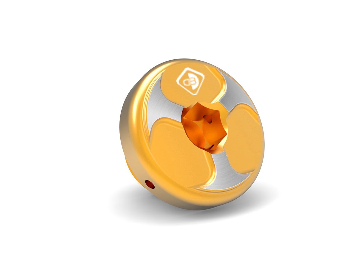 Machined from solid in light alloy and subsequent colored anodizing treatment.