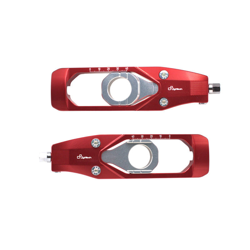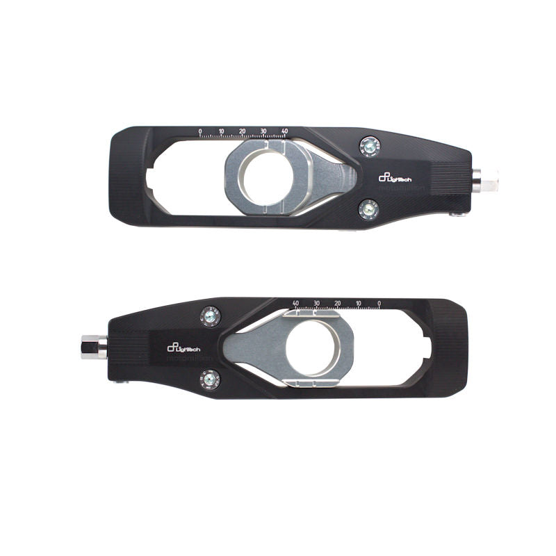 Made from 7075-T6 and 6082 billet aluminum and precisely machined for the perfect fit, these chain adjusters allow you to easily set your chain tension, and also it allows the wheel to be accurately lined up from left to right side.