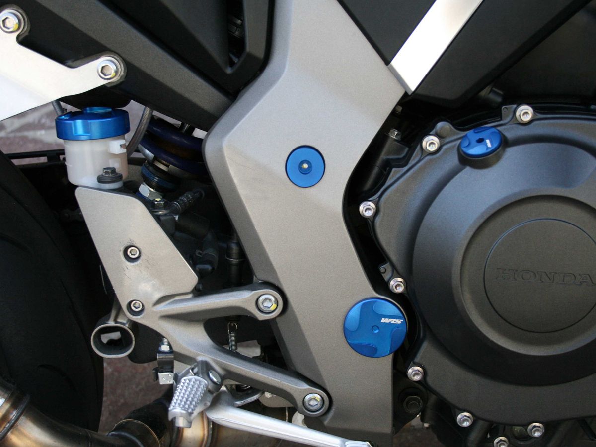 Kit composto da  4 tappi marchiati WRS realizzati in ergal, completamente ricavati dal pieno mediante macchine CNC, garantiscono  un impatto estetico unico coprendo i "fori" del telaio.